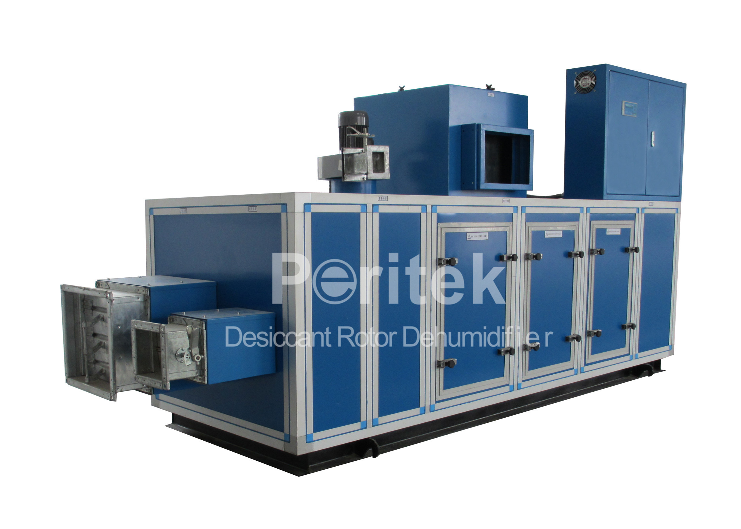 The core component of rotary dehumidifier is the 8-16 hour spin in turn densely cellular Conde desiccant wheel. The desiccant wheel on both sides by high-performance silicon fluorine rubber seals along the entire surface of the radial will be divided into 270 ° of the treatment area and 90 ° of the regeneration zone, when the moist air comes into the processing area, the air moisture in the desiccant wheel was adsorbed into dry air, dry air meet the need of dry place or gas production process